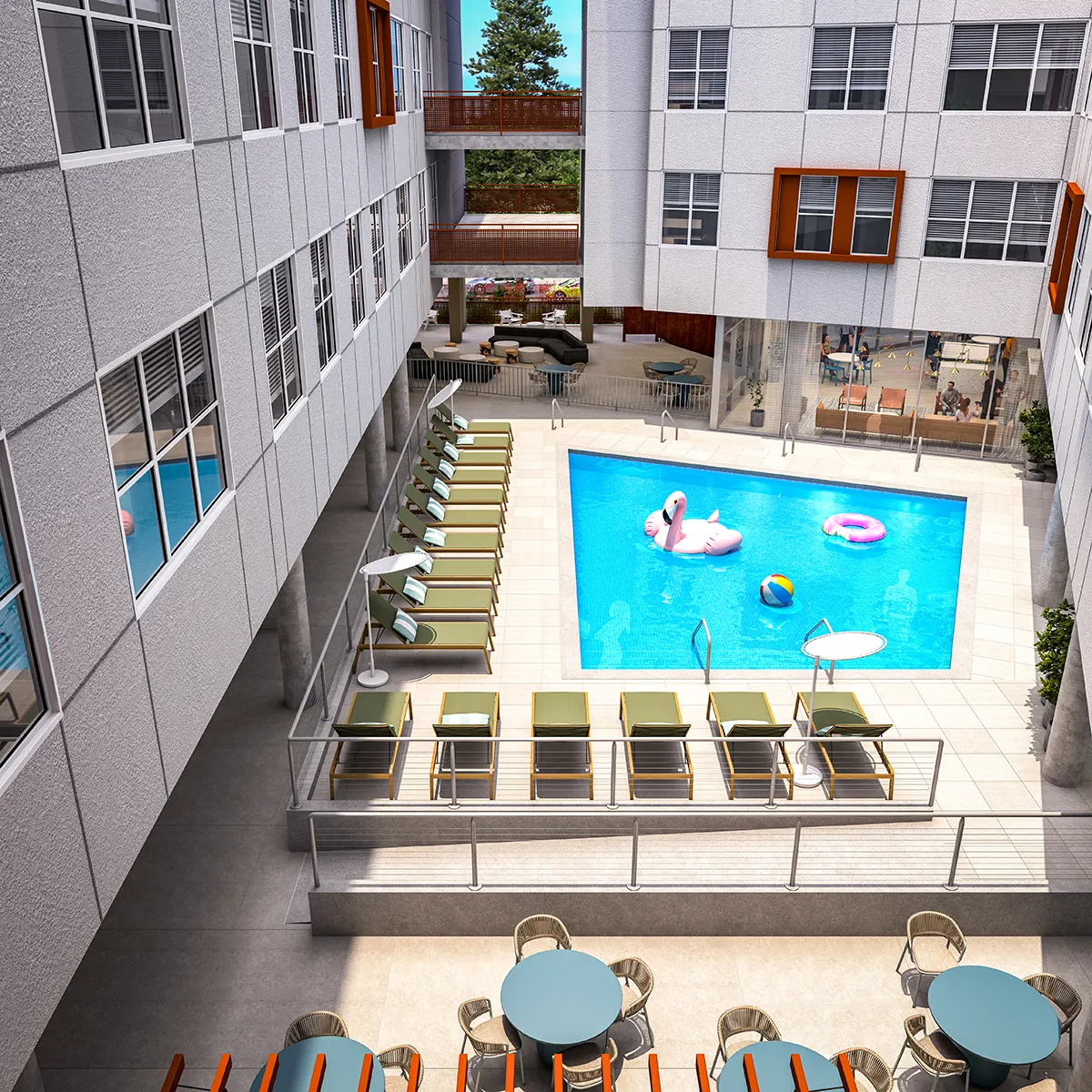 Jump on in, float the afternoon away, then lounge on the sun deck. Our pool area is the perfect spot to relax, meet your neighbors, and host your friends.